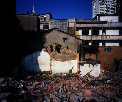 前些年厦门老城区大规模改造拆迁过程中,许多老房子空了,暴露出一截截残墙断壁。有一天我突发奇想,这些断墙不也是很好的书写材料吗?反正它们很快就要消亡,在离开这个世界之前,索兴让它们再发挥一点余热。于是,我就在这些残壁上抄写心经。