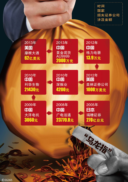 股票中的“乌龙指”是指股票交易员、操盘手、股民等在交易的时候,不小心敲错了价格、数量、买卖方向等事件的统称。8月16日,光大证券“乌龙指”事件令A股投资者唏嘘不已。实际上,此前在国内外股票市场上,乌龙事件也屡次发生。值得注意的是,即便在全球最大、最先进的美英日资本市场上,乌龙指事件也都曾导致过其股指暴涨暴跌。图/CFP