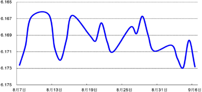 上周五,美元兑人民币中间价报6.1728元,较前周小幅上行19个基点,维稳态势不改;美元兑人民币即期价格波动区间进一步收窄,周五即期价格盘终收于6.1205元,较前周小幅上升0.02%。