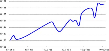 上周五,美元兑人民币中间价报6.1333元,较前周五下行39个基点,人民币升值趋势延续;美元兑人民币即期价格下行势头强劲,但在6.08元整数关口遭遇较强阻力,周五即期价格盘终收6.0840元,较前周五下行128个基点。