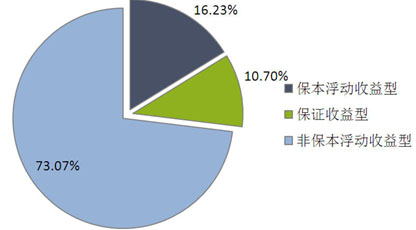 从收益类型来看,保证收益型产品发行了340款,较上月增加21款,市场占比上升0.60个百分点至10.70%;保本浮动收益型产品发行了516款,较上月增加30款,市场占比上升0.85个百分点至16.23%。而非保本型产品的发行量则小幅下降:非保本浮动收益型产品发行了2323款,较上月减少32款,市场占比下降1.45个百分点至73.07%,依然是最主要的产品收益类型。(图1)