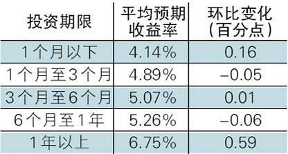 收益表现:产品平均预期收益率微幅下跌,6个月至1年期产品跌幅最高