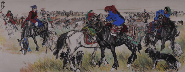 此时,国内各大拍卖公司秋拍决战正酣,请梁志伟先生盘点这一年拍卖市场的表现,但是统计数字尚未出来,作者只能凭借过往市场规律得出自己的判断。在我看来,回暖也好,严冬尚未过去也罢,市场总是按照它的“道”踌躇前行,此轮秋拍,亿元拍品重出江湖,而关注一位画家作品的文化、艺术价值与关注市场本身同样重要。本期我们将北京保利拍卖公司拍出的秋拍最贵作品、成交价1.288亿元的黄胄的《奔腾的草原》呈现给大家,关注它是因为,无论怎样,拍卖市场的风向标作用永远让人们不可小觑。就也是盘点的价值所在吧。