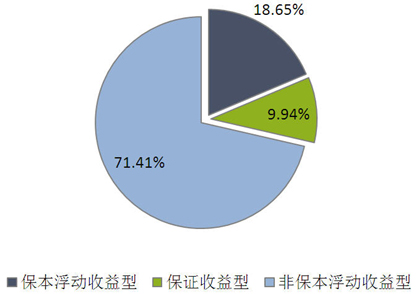 从收益类型来看,保证收益型产品发行了386款,较上月增加46款,市场占比下降0.75个百分点至9.94%;保本浮动收益型产品发行了724款,较上月增加208款,市场占比上升2.41个百分点至18.65%;非保本浮动收益型产品发行了2773款,较上月增加450款,市场占比下降1.66个百分点至71.41%,依然是最主要的产品收益类型。(图1)