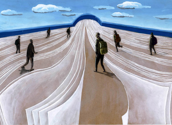 一边学文一边作画,是漫画人的一般生活状态。书中有画,画中展咫尺可至天涯。近年,读到《易经》:“屯。元亨,利贞。勿用有攸往,利建侯。”屯卦告诉我们:水流到的地方不一定成渠,需要人为开凿修筑之处很多。渠道正如地上之路,是无所谓有、无所谓无的,我们可以按自己想法去开创诸多渠道。还是“路在脚下”啊。