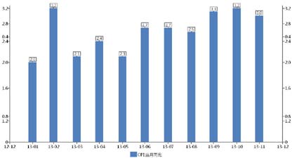 从9月开始一级市场发行渐入高峰,前两周利率债发行规模分别达到1300亿和2600亿(含3年央票续做),信用债发行量也有所增加,供给压力下多期品种中标利率高于市场预期,其中30年国债则创了历史发行利率新高的4.76%,带动二级市场收益率继续弱势上行,回升到历史高位。10年国债一度上行至4.14%,10年国开也突破至4.90%上方。于9月6日上市的国债期货受到套保和对冲风险的压力,于上市首日起便开始震荡走低。从10月14日起,国家统计局陆续公布了9月份及3季度各项经济数据,不仅CPI重返3%上方(图5),7.7%的GDP数据也击碎了此前关于中国经济的下行预期,期间一级市场利率债仍然保持较高的发行节奏,市场继续承压。央行在10月29日将7天逆回购操作利率从3.9%上调至4.1%,更加深了市场对未来资金面的紧张预期,引发大量抛盘,推动1年国债上行23BP至4.01%,10年国债上探至4.20%附近,10年国开债则在突破5.0%心理关口后蹿升至5.26%。