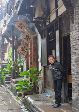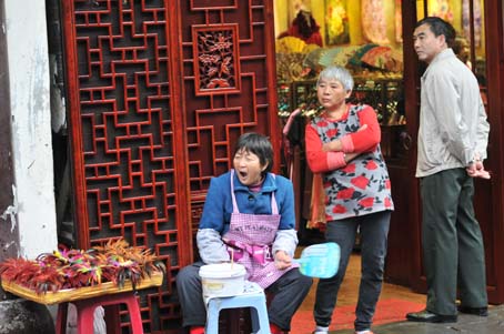 在游山玩水的地方拍出点人文题材,对我来说还是大姑娘出嫁头一遭,拍什么呢?站在小镇入口的老店铺“木锺酥”前,看着两位伙计很专注地作着秀,你一锺来我一捧的,把砧板上的酥饼打得“叭叭”作响,也打得我一度稀里糊涂。