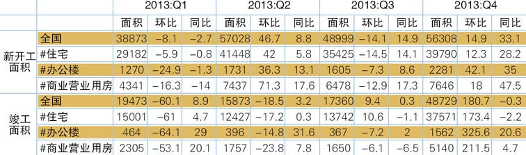 表4 2013年各季度房屋建设情况 单位:万平方米,%