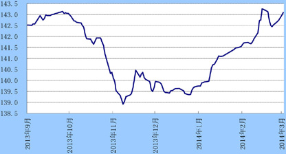 上周,因乌克兰局势带动市场避险买盘增多,国际金价显著上升41.83美元/盎司至1381.68美元/盎司,单周升幅3.12%;此外,布伦特原油价格较前周周五小幅下降0.43美元/桶至108.57美元/桶。