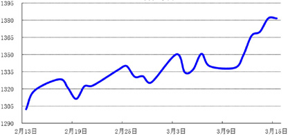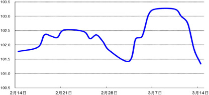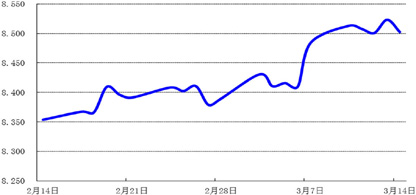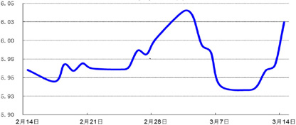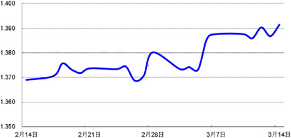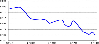 上周五,美元兑人民币中间价报6.1346,即期价格盘终收于6.1362。此外央行决定自3月17日起,银行间即期外汇市场人民币兑美元交易价浮动幅度由1%扩大至2%,预计人民币的实际波动将会延续近期宽幅震荡格局。