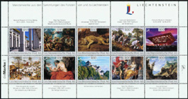 2005年5月18日,中国与列支敦士登联合发行《绘画作品》特种邮票,全套2枚,名称分别为玉堂柱石图和壁龛花束图,邮票面值均为80分,发行量1165万套,志号:2005-9。这套邮票的第一图采用我国明代画家陈洪绶的作品,现藏于北京故宫博物院,此画具有很强的装饰韵味,通过描绘玲珑剔透的太湖石,将之透、瘦、坚的特点表现得淋漓尽致,尤其是线条的勾勒富有特点,工整中不失稚雅,具有较强的木版画味道,形成了一种新的画风。第二图为列支敦士登BosschaertAmbrosiusd.A(博斯舍尔特)的一幅花卉作品,体现了浓烈的欧罗巴风格,其光和影的运用颇具功力。