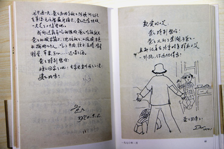 这就是一本图画书,上面写了一些给女儿的话。从1969年到1972年,当时丁午先生被下放到河南黄湖的五七干校劳动,一个特殊的政治时期,中间又经历了婚姻的变故,女儿小艾是他最牵挂的人,他只能用写信来寄托自己的思念,面对一个8、9岁的孩子,识字不多,不谙世事,就给她画画,再加上一点简单的文字。一对父女的家书,成就了一段特殊时代家国记忆。