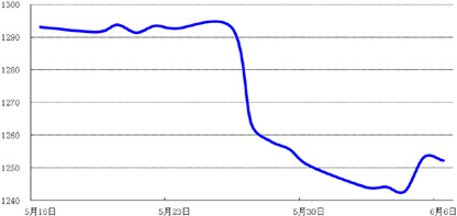 上周初,受全球股市上涨以及实货买需不振的影响,国际金价表现疲弱;周四,欧洲央行宣布进一步放宽货币政策,带动金价触底反弹,但涨幅受限,周五收于1252.23美元/盎司,较前一周小幅上涨0.12%。
