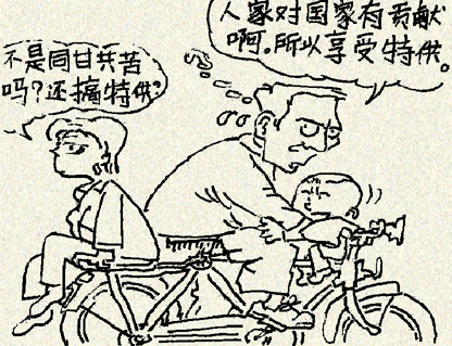 王二的儿子王小二不明白,为什么部长楼里的李小四他爸李四就能去特供店里花5毛钱给李小四买巧克力,而王二却不能花5毛钱给他买块巧克力?