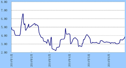 货币市场:上周,由于临近半年末时点,市场流动性略有趋紧,银行间市场质押式回购7天期品种加权利率上行36个基点至3.86%。但从央行公开市场暂停正回购操作的动作中,可以看出央行稳定资金波动的意图明显,因此,机构对流动性前景仍较为乐观。