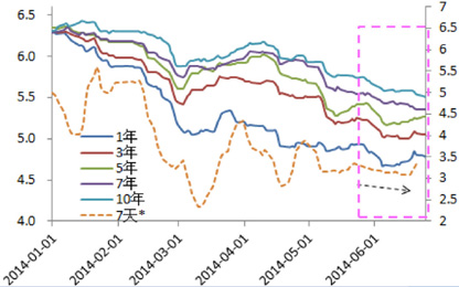 图2 2014年上半年银行间国债收益率曲线期限结构