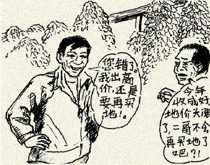 但王二还是觉得买地划算。王二的做法,还造成了另外一个后果,就是村里那些真正缺地的家庭再也买不起地了。那些人都在心里骂王二,觉得是王二炒高了地价。