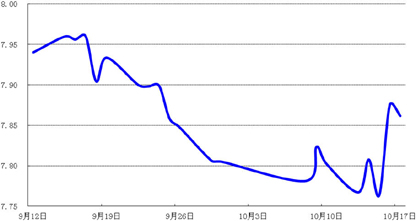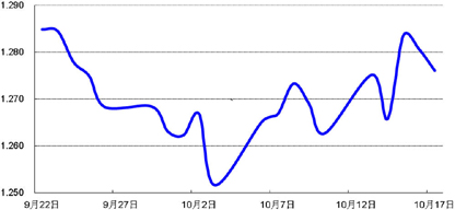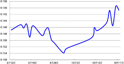 上周,人民币对美元中间价小幅走强0.10%;即期市场成交价延续此前窄幅震荡格局,当周累计上涨0.11%,周五收盘于6.1240元。预计短期内人民币走势仍将趋稳。