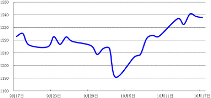 上周,因美国股市持续震荡,令市场投资者对全球经济忧虑升温,提振了黄金的避险需求,国际金价周五收盘于1237.69美元/盎司,较前一周上涨1.20%。