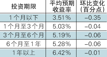 收益表现:季末效应未显现,各期限类型产品预期收益均下滑