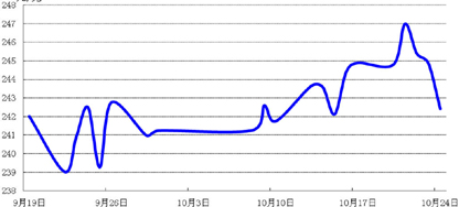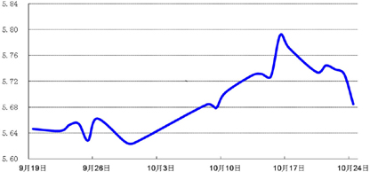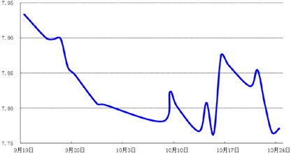 上周,人民币对美元中间价小幅走强0.10%;即期市场成交价延续此前窄幅震荡格局,当周累计上涨0.11%,周五收盘于6.1240元。预计短期内人民币走势仍将趋稳。