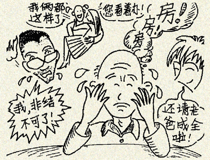 王二有三个儿子,一大家子都住在一个屋檐下。转眼,儿子都到了谈婚论嫁的年纪。老大准备明年结婚,老二老三选择了后年。王二要分别给儿子们盖房子。
