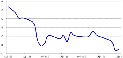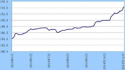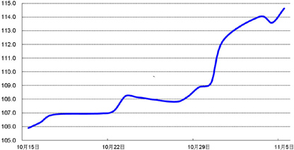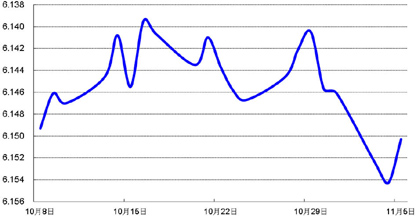 上周,外汇市场波动较大。美国共和党自2006年以来首次在中期选举中赢得参众两院控制权,提振了美元;而日本央行意外扩大量化宽松政策的影响力犹在,带动日元触及近七年低位;人民币中间价走势平稳,即期市场成交价小幅下跌0.02%至6.1146元。