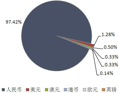 从投资币种来看,人民币产品发行4115款,环比减少753款,市场占比上升0.52个百分点至97.42%;美元产品发行54款,环比减少26款,市场占比下降0.31个百分点至1.28%;澳元产品发行21款,环比减少4款,市场占比保持在0.50%;港币产品发行14款,环比减少8款,市场占比下降0.11个百分点至0.33%;欧元产品发行14款,环比减少5款,市场占比下降0.05个百分点至0.33%;英镑产品发行了6款,环比减少4款,市场占比下降0.06个百分点至0.14%。(图2)