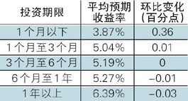 收益表现:短期产品预期收益率上涨,中长期产品则有所下滑