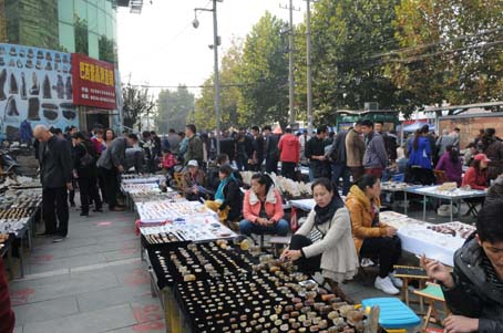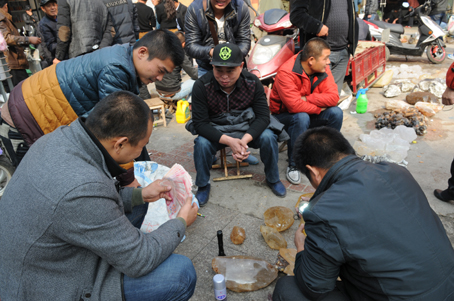 东海县每逢阴历的初八、十八、二十八是水晶大集。水晶城前的街道上摆满了大大小小的摊子,各种各样的石料、造型各异的摆件,五花八门。逢集的这天,不宽的街道会被挤得水泄不通,如果刚好再赶上个周末,更是人头攒动,闲逛的、捡漏儿的,喜不喜欢水晶另当别论,享受这节日般的气氛才是重点。但对于像王立国这样的圈儿里人来说,大集还有着更重要的意义。高手在民间,有好多小作坊的作品会在大集上亮相,没准被喜欢的人见了,就收了,接下来还可能会带来定单,所以,这水晶大集无形中也成了民间高手“斗宝”的舞台。王立国、李彩霞夫妇俩逢集必去,老婆摆个摊子卖货,老公去买石料,也借机看看别人做了什么好东西。