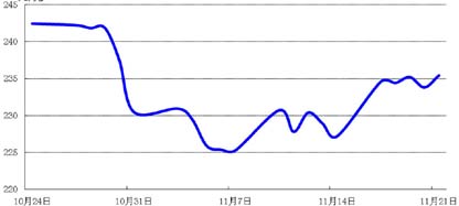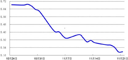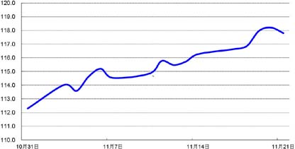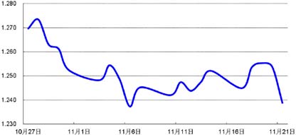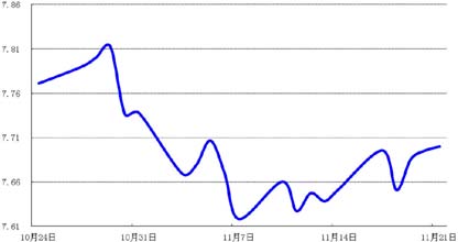 上周,人民币对美元中间价小幅走强,当周累计升值0.02%;即期市场成交价呈窄幅震荡,周初因沪港通的开闸提振了人民币走势,但其影响随后有所淡化,当周人民币即期价格小幅升值0.09%至6.1249元。