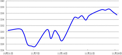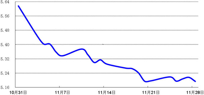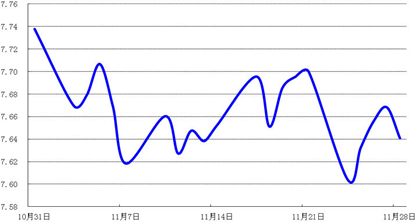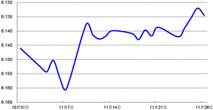 上周,人民币对美元中间价整体走强,当周累计升值0.07%,并于周四触及近八个月新高;但即期市场成交价并未跟随中间价升值,受央行意外降息及月末购汇偏多等因素影响,人民币即期价格小幅走弱,当周累计贬值0.33%。