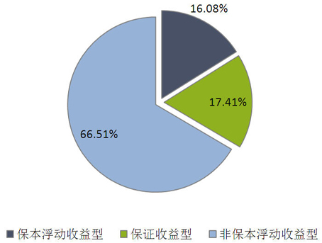 从收益类型来看,保证收益型产品发行973款,环比增加514款,市场占比上升7.15个百分点至17.41%;保本浮动收益型产品发行899款,环比增加64款,市场占比下降2.57个百分点至16.08%;非保本浮动收益型产品发行3718款,环比增加535款,市场占比下降4.59个百分点至66.51%。(图1)