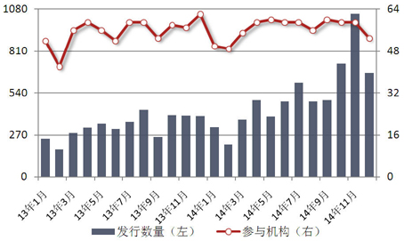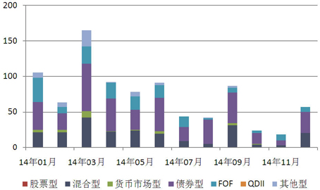 本月银行理财产品发行数量环比大幅增长。受年末因素的影响,本月银行间市场资金面在下旬出现紧张格局,各关键期限点SHIBOR利率均出现上扬,特别是3个月以下期限涨幅明显。鉴于此,银行理财产品的发行收益率整体呈上涨局势;因前月增长非常态,信托产品发行数量迅速回落;阳光私募产品发行数量和成立数量的双增,再次说明市场对A股市场的持续看好;证监会公布《私募股权众筹融资管理办法(试行)(征求意见稿)》,监管部门第一次将互联网金融正式纳入监管;险资投资创投基金开闸,首只私募股权基金设立。