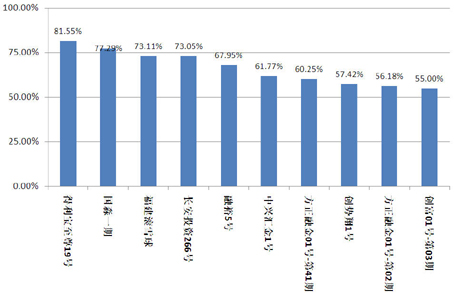 交通银行的产品发行数量为530款,位列第一;中国银行、平安银行、建设银行、南京银行分别发行了321款、277款、267款、231款,分列第二至第五。发行数量超过百款的银行还有招商银行、民生银行、广发银行、华夏银行、江苏银行、兴业银行、杭州银行、上海银行、浦发银行。
