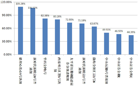 从表现最好的产品收益情况看,绝对收益都在40.00%以上,录得收益环比有较大提升,混合型计划占8款。(图9)
