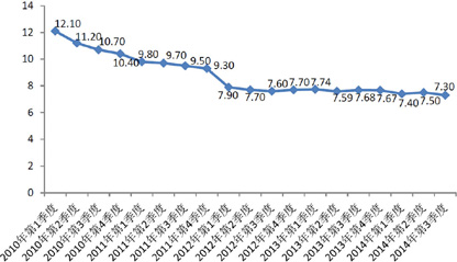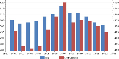 2015年,中国经济仍将受到增长速度换挡期、结构调整阵痛期和前期刺激政策消化期的“三期叠加”影响,宏观经济仍然面临较大下行压力。从已经公布的最新PMI、CPI、工业增加值、社会融资总额等经济金融数据看,尚未出现明显复苏信号,降低社会融资成本仍将是重要的政策目标。2014年年底召开的中央经济工作会议提出“积极的财政政策要有力度,货币政策要更加注重松紧适度”,更多的政策宽松措施值得期待。