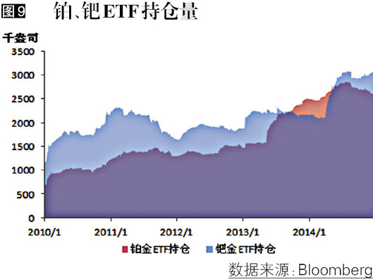 尽管南非地区在钯矿供给方面的重要性不如铂金高,罢工仍令钯金矿产供给受到重创,预计2014年钯金市场将出现1.18 Moz的赤字,较2013年的赤字水平(0.93 Moz)进一步扩大。