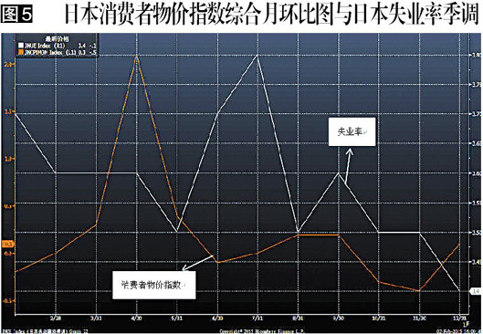 从图形来看,日本与欧元区存在很大的类似,但日本的波动率更小。2015年日本同样将继续货币宽松政策,但力度会不及欧元区,同样其主要利率下跌的幅度也将小于欧元区。