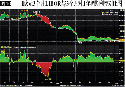 交易指标方面,欧元3个月LIBOR在2014一路下滑,最低值在0.04714,最高值在0.32143;3个月对1年调期利率与3个月LIBOR基本同步,在5、6月份一度出现低于LIBOR值的情况,其最低值在0.062,最高值在0.336。