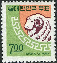 事实上,中国并非第一个发行羊年邮票的国家,早在1966年就有3个国家与地区发行了1967年羊年的生肖邮票,分别是韩国、日本和琉球。更为巧合的是这枚羊年生肖邮票均在1966年12月10日发行。1967年1月17日中国香港发行羊年生肖邮票,且在邮票上印有隶书“岁次丁未”4个大字,这也是生肖邮票上第一次出现的干支纪年文字。