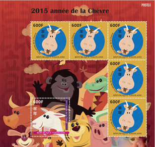 此外,列支敦士登发行的2015年羊年邮票,继续采用激光镂空技术印制,酷似中国传统剪纸、窗花,受到广大中国生肖集邮爱好者的喜爱。奥兰群岛作为首次发行生肖邮票,采用与中国邮政合作方式,该套邮票一套2枚,以小全张形式亮相,邮票主图均为奥兰羊。而密克罗尼西亚群岛发行了金箔材质的羊年邮票,令人有蓬荜生辉的感觉。汤加共和国发行的羊年邮票采用卡通羊造型,全套邮票折起来犹如一个小红包,犹如春节长辈给小辈送压岁钱,可谓匠心独具。朝鲜羊年邮票的布局类似我国的全张票,但在全张票四角以“三阳开泰”来代替,增添了版票的活力与文化元素,从欣美观性出发则要强于我国平淡无奇的全张票布局。越南的羊年邮票采用母子羊格局,基本上是越南邮票的一贯风格,比较接近我国的水彩画特征。中非共和国的羊年邮票采用了抽象的岩画风格,展现着古老的中非文化元素。
