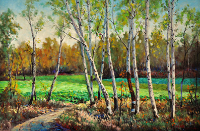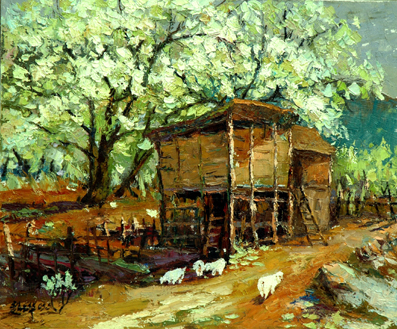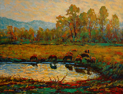 《夕阳牧歌》堪称赵世华的代表作,画家以精湛的技艺描绘的白云、绿树、黄牛、青草等,均表现出大自然的和谐之美。他的画不是照着照片的刻画,而是全部来自大自然,都是他写生得来,生动、鲜活、舒展,他要表达的是他一己的感受。