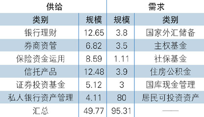 表1 财富管理市场供需表(截至2014年6月末) (单位:万亿)