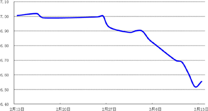 债券市场:上周,银行间现券市场走势震荡:周三公布的2月经济数据低迷,带动债券价格回升;但周四公布的金融数据强劲,令债券价格再度承压。整体来看,中债总指数小幅上升0.06至157.66。