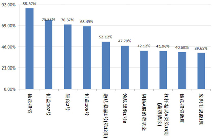 从表现最好的产品收益情况看,月度收益率前十的产品中,混合型计划8款、债券型和股票型计划各1款。(图10)