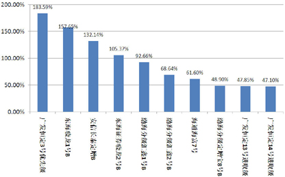 本月集合信托预期收益率有一定下降,但短期主要产品下降并不明显,1-2(含)年期限段产品平均预期收益率10.10%,环比下降10.22BP,其中,房地产领域平均预期收益率10.34%,环比上升0.66BP,工商企业领域平均预期收益率10.09%,环比下降21.15BP,基础设施领域平均预期收益率10.17%,环比上升5.18BP;2-3(含)年期限段产品平均预期收益率9.98%,环比下降25.50BP,其中,房地产领域平均预期收益率9.23%,环比下降66.67BP,基础设施领域平均预期收益率9.86%,环比下降38.00BP;3年以上期限段产品平均预期收益率10.90%。(图6)