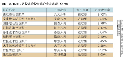截至2015年2月底,在运行的投连险投资账户共计184个,所有投资账户的月度平均收益率为2.74%。