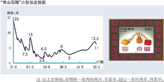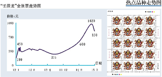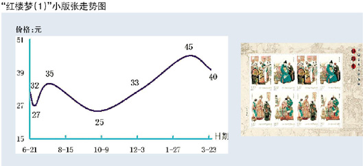 低价品种历来是大资金青睐的目标,特别是市场流通量大的低价品种往往存在着机遇。3月份,“海底世界”套票小版张的崛起就充分说明了这一点,这枚发行后昙花一现的套票小版张,在经历了16年之久的打折后,终于抓住了托管上市的机遇,开始了价值回归之路,其整包(500枚)价格已攀升到17000元附近,不仅收复了久违的16元面值,而且也大踏步地上扬。相比较而言,本来高出一筹的“黄山”套票小版张无奈成了寄人篱下的品种,不过可以相信随着“海底世界”套票小版张的成功,“黄山”的价值回归时间表或许并不遥远。