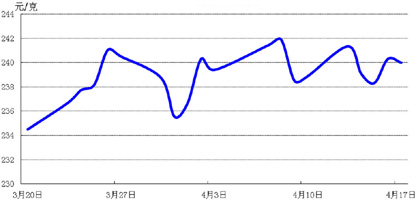 上周,因美国公布的经济数据低迷,市场对美联储将在6月升息的预期降温,金市投资者保持谨慎,金价维持震荡,国际金价周五收盘于1204.15美元/盎司,较前一周下跌0.29%。